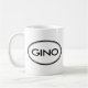 Check out this Gino mug! Is your name Gino? Or do you have a husband, boyfriend, male family member or male friend named Gino? If so, this "Name Stamp" mug is exactly the gift that you're looking for! The design features "Gino" in big black lettering surrounded by two ovals, one thin and one thick.