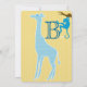 Cute aqua Giraffe on tan background with shades of blue and white lettering.