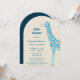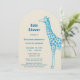 Cute aqua Giraffe on pink background with shades of blue lettering.