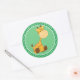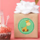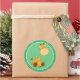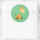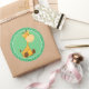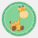 This design features a green background with a repeating pattern of jungle leaves. A cute baby clipart brown and orange giraffe sits in the centre of the sticker.
