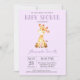 Giraffe Baby Shower Invitation Purple and Grey Card. Boy or Girl Baby Shower. For further customisation, please click the "Customise it" button and use our design tool to modify this template.