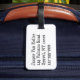 This was purchased as part of a 40th Birthday present for my nephew who is going to Vegas. It is made of high quality, very study and we decided only to put his name on the back of the tag, but you can add a full address if you so wish.