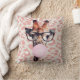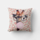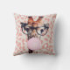 Giraffe wearing glasses and blowing a pink bubble gum with animal print background.