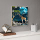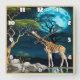 Giraffe by the Lake Under a Full Moon Night Square Wall Clock
