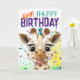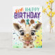 Cute and Funny Giraffe with Colorful Confetti Celebrates a Birthday.