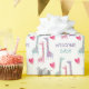 Adorable spotted giraffes in pastel colours of teal, pink, and purple combine with a cute baby elephant to welcome the new baby on this gift wrap paper. Along with the animal images are pink hearts, and your custom text. Everything is placed on a white background. You may easily make the text fields say anything you'd like, so you may use this paper for other occasions like birthdays.