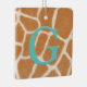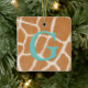 This ornament has an aqua monogram over giraffe spots. Customise the back with your own message.