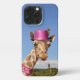 Giraffe in sparkly pink hat iPhone case