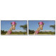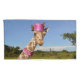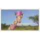 For a little fun, here's a giraffe in a sparkly pink hat and fancy choker necklace. This image was created by hand and is not AI generated.