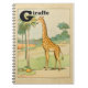 Giraffe eating the leaves of an acacia tree on the open desert savanna in Africa. Drawing from a children's book alphabet illustrated by Benjamin Rabier.