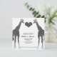 This fun invitation to a wedding reception features giraffes and hearts. Shown on linen paper, but you can change to suit your preferences.