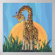 Giraffe Mama and Baby children’s art created by Imagine That! Design on electronics, accessories, and gifts is a whimsical scene of a mum and baby giraffe standing against a setting sun and a textured blue sky snuggled up together with the mama’s neck curled over so her and her baby can touch cheeks in a loving pose. Giraffe lovers of all ages will love getting this cute giraffe family painting as a gift.