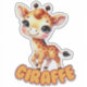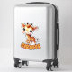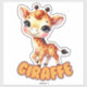playful font perfectly complements the giraffe’s joyful demeanour, making it an ideal fit for a child-friendly space. A clean white border surrounds the entire sticker, ensuring it stands out vividly on any background, whether applied to walls, furniture, or other décor.