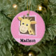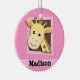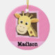Giraffe on Pink & White Stripes Ceramic Tree Decoration