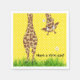 Cute giraffe peeking over top with white daisy in its mouth on polka dots.