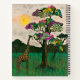 Planes of Africa II by Alonzo Saunders. The beauty of widlife is captured in this art with the sun slowly setting as a giraffe eats leaves from a colourful tree on the African planes. | 132935GG