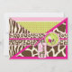 Cute giraffe and a wild pacifier with zebra, giraffe, leopard, and cheetah patchwork prints with 3D-look lace trim ribbons baby shower invitation. Colours are pinks, greens, and browns.