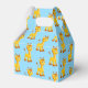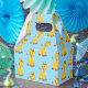 Party favour box shown in light blue with a cute cartoon giraffe print.