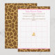 Giraffe Pink Girl Baby Shower Bingo Invitation