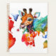 The cover of this planner portrays a colourful giraffe. In the background shades of pastel and bright colours!