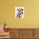 A poster with a portrait of a giraffe. Will look great in a frame.