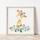 Giraffe, Safari, Jungle, Blue Flowers, Boy Nursery Poster