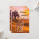 Rehearsal dinner invitation with a whimsical and colourful painting of giraffes in a safari style African landscape. Beautiful for a couple that loves animals, a zoo themed wedding or when the couple is going on a safari honeymoon.