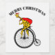 A funny cartoon of a giraffe, riding a bike while dressed and Santa Claus and carrying a large sack of Christmas gifts. If you would like any help customising this design please contact me, there is an ask this designer button, just below this text. The cute, funny giraffe is riding a vintage, penny farthing bicycle.
