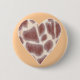 Colour drawing of giraffe spots in a heart shape is printed on pin on buttons. The background colour can be customised.