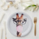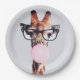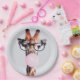 Giraffe Wearing Glasses Blowing Pink Bubble gum Paper Plate