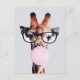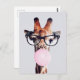 Giraffe Wearing Glasses Blowing Pink Bubble gum Postcard