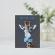 Giraffe wearing glasses, bow tie blowing blue gum postcard
