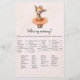 Adorable and whimsical, "Who's My Mommy", baby shower game card with a baby ballerina giraffe is tutu excited to play a new baby shower game! Dressed in an orange tutu with a matching flower on top of her head. Templates on back.