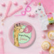 Whimsical Giraffe blowing bubble gum artwork adorn this party plate. Great for birthdays, baby showers, or other jungle related party ideas. Just change the custom text.