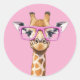 Giraffe with Pink Glasses Light Pink BG Sticker
