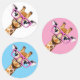 A cute sticker set featuring a giraffe wearing pink glasses in multiple color background designs.