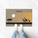 Gorgeous Serengeti themed Welcome Doormat. Neutral black, grey and gold-ish colour palette. Decorated with giraffes, an African tree - and a beautiful moon. Brings to mind a sunset. Personalise with your text/name. Beautiful housewarming gift!