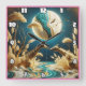 Giraffes by a moonlit river square wall clock