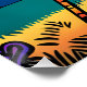 Stained glass style painting of giraffes in the Savanna with the evening sun in the background in vivid colours.