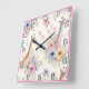 Giraffes roam through bright African blooms Square Wall Clock