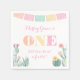 Bright and happy colours decorate this Mexican Fiesta inspired 1st birthday party napkin design featuring papel picado and watercolor cacti. ***How to edit the design to offer ages other than ONE*** From a desktop computer, underneath where you enter your text in the customisation boxes, "click to customise further". This will take you into the design tool. Click on the "eye" symbol once to hide the "ONE" and then click on the eye symbol once alongside the chosen age to show the new layer. Once you are happy with the placing, click "Done" to return to the original page, and add quantity to your cart etc.