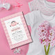 This soft pink baby shower invitation is designed with a cute pink airplane surrounded by white clouds layered on top of a white block drawn in a kawaii style. Personalize this adorable girly card with the baby shower or birthday party details in a fun grey font. On the reverse is a pink background with cute clouds pattern. Browse our matching products to find presents or party supplies for the mom to be.