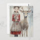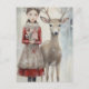 Adorable girl and a deer in a winter forest mixed media collage AI generated