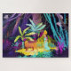 A dark-haired girl in a beautiful Sari with a jug of water on her head walks through the rainforest next to a tame leopard surrounded by palms, bushes, colourful flowers and tropical trees. The magical and shimmering atmosphere of the illustration takes us to the old familiar fairy tales. A wonderful puzzle for the whole family to spend an evening with loved ones.