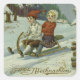 Girl and boy enjoy a sleigh ride illustration square sticker