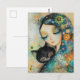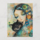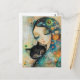 GIRL AND CAT ART JIGSAW PUZZLE POSTCARD