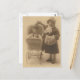 girl and her doll in carriage post card