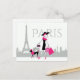 Girl and Poodle in Paris With Eiffel Tower Postcard