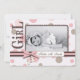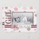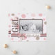 Fun dot print with 3D-look pink dot ribbon bow and pacifier birth announcement photo card.
