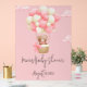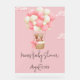 PINK BABY SHOWER SIGN WITH PINK CLOUDS AND BALLOONS AND A TEDDY BEAR.